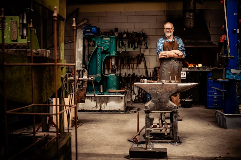 Maarten (1964) kunstenaar en dorpssmid. In zijn werkplaats op Vlieland maakt hij kunst van ijzer. Maarten vormt zijn ijzer, roodgloeiend uit het vuur, door het te smeden, te buigen, te wringen, te slijpen, te lassen en te kloppen.